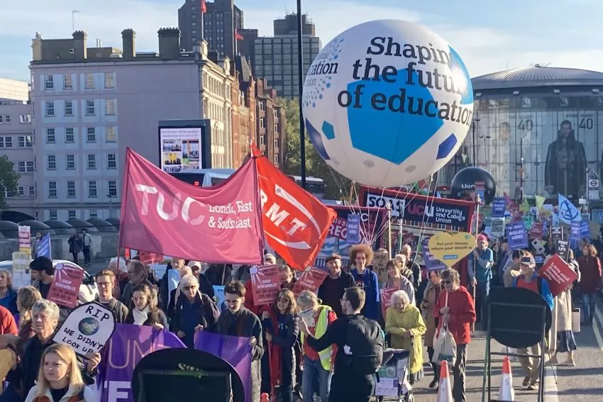 Trade unionists join London protest for climate justice, part of the global day of action during COP27 (photo credit CACC)
