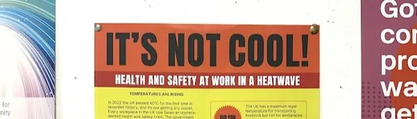 One of the key actions is encouraging union members to do lunchtime or after-work banner moments – standing outside your workplace with signs like 'Heat Strike' or 'Too Hot to Work' to highlight how unsafe it can be to work in these conditions. They can be downloaded here - or homemade is fine. Another idea is to take thermometers into work for a visual record of the temperature.