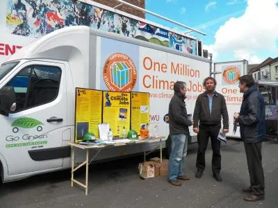 The One Million Climate Jobs campaign was set up by trade unionists within the Campaign against Climate Change, and is supported by eight national unions, including PCS, CWU, UCU and TSSA. The One Million Climate Jobs report sets out the work that needs to be done in the transition to a low carbon economy fit for the future. It received inspiration from the struggle of workers at the Vestas wind turbine factory on the Isle of Wight, who occupied their factory when it was slated for closure in mid 2009.
