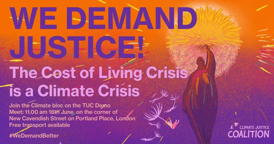 Trade unions are organising coaches from around the country. A climate bloc is being organised - all welcome who demand action now that will help both people and the planet.